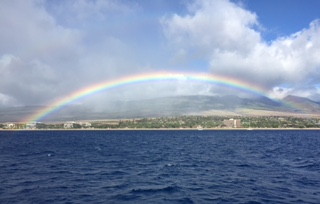 Rainbows are a beautiful thing to witness through the drops and mist of a storm. These pictures are from a recent trip to Hawaii as my wife and I were sailing off the coastline. There are some very interesting dynamics of a rainbow. The sun is always behind you when you face a rainbow, the rain is in the direction of the rainbow, and the circular arc of the rainbow is in the direction o